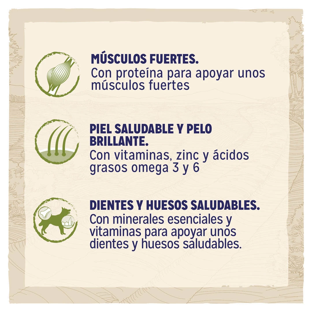 Gran fuente de proteínas, gracias al pollo como ingrediente principal, de calidad.