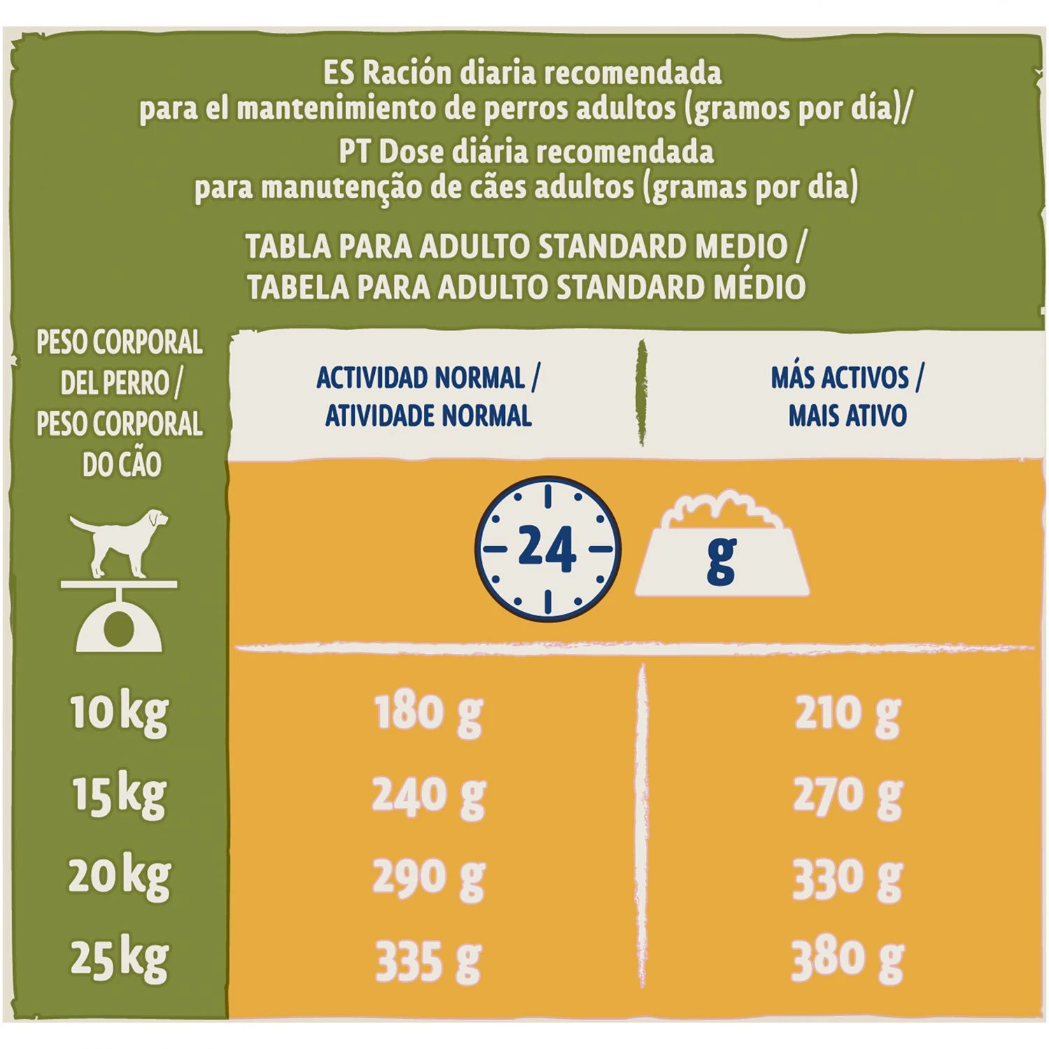 Apto para perros de cualquier raza, a partir de los 12 meses. Alimento completo para el buen mantenimiento del perro. Contiene dos formas de croquetas diferentes que ayudan a la limpieza dental.