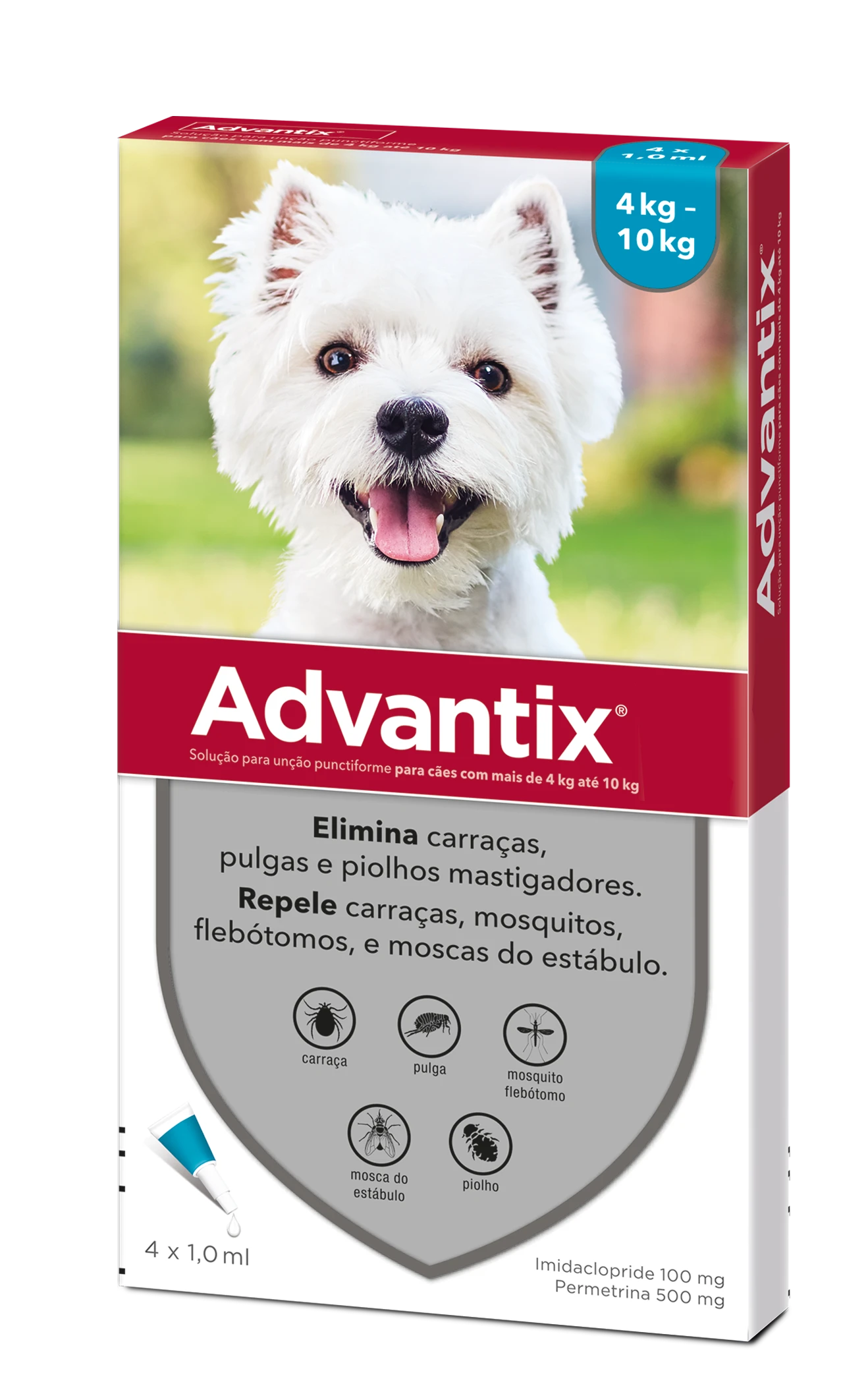 Advantix Spot On 4 – 10 Kg está disponible en dos presentaciones: 4 pipetas o 6 pipetas.