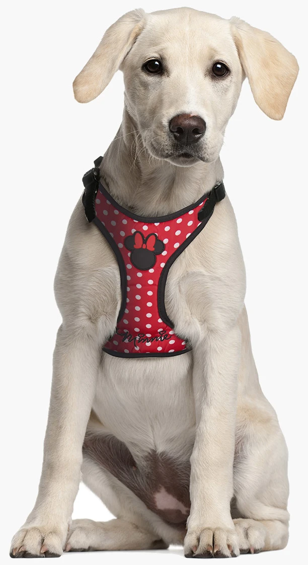 Todo el estilo que tiene la glamurosa Minnie Mouse en forma de arnés para perros.
