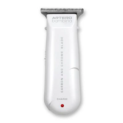 Máquina cortapelos de máxima precisión para zonas difíciles. Artero Bambina es una máquina de peluquería muy manejable que proporciona un acabado perfecto a tu mascota. Funciona sin cable. Incluye una cuchilla de carbono en forma de T y recalces de 3, 6, 9 y 12mm. En color blanco.