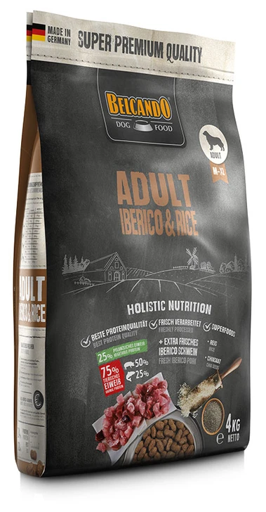 La combinación de carne fresca de cerdo iberico y arroz de digestión fácil hace de esta receta una autentica experiencia de sabor. Lo especial: los cerdos de pata negra viven semisalvajes en las dehesas del sur y sur-oeste de la península. Gracias al ejercicio que hacen buscando alimentos, engordan relativamente lento. Eso y la alimentación especial en si, a base de bellotas, setas, raízes y otros frutos silvestres, crea el sabor tan único del cerdo iberico. Adult Iberico & Rice se completa con ingredientes valiosos y superfoods como semillas de chía con sustancias mucilaginosas naturales y un 20% de Omega 3. Gracias a esto la variedad está perfectamente adaptada a las necesidades de perros adultos.