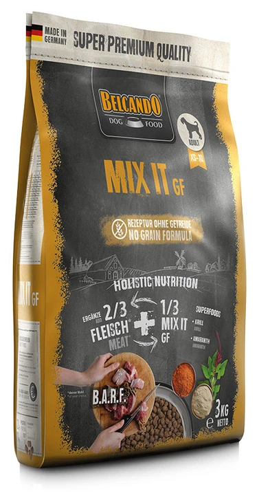 Pienso para Perro Mix-It dieta exclusivamente a base de carne solo aporta una pequeña parte de los nutrientes necesarios y, en función de las necesidades del animal, a menudo es preciso recurrir a suplementos con minerales, vitaminas, oligoelementos y ácidos grasos esenciales. La correcta elección de la fibra, necesaria para la regulación de la digestión, así como de materias primas con importantes extractos vegetales secundarios (polifenoles, carotinoides, bioflavonoides, taninos y agentes amargos) resulta también difícil para muchos dueños.