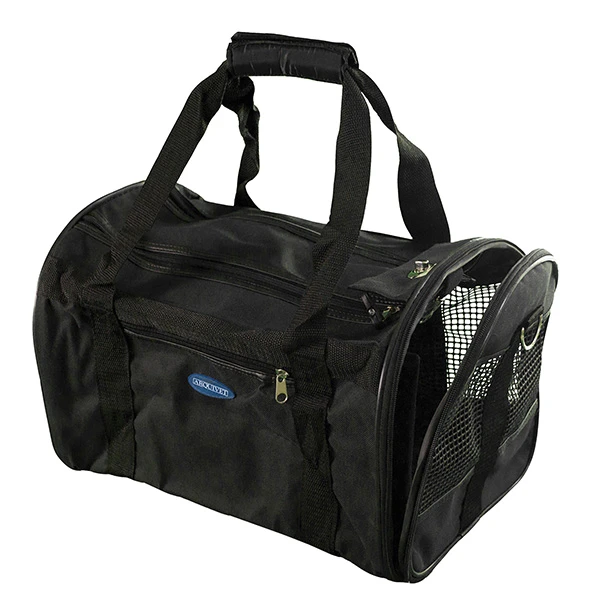 Bolsa plegable con apertura en parte superior y lateral, fácil entrada y salida nuestra mascota. Asas de transporte y bandolera extraible, bolsillos exteriores, ventilación a través de malla.