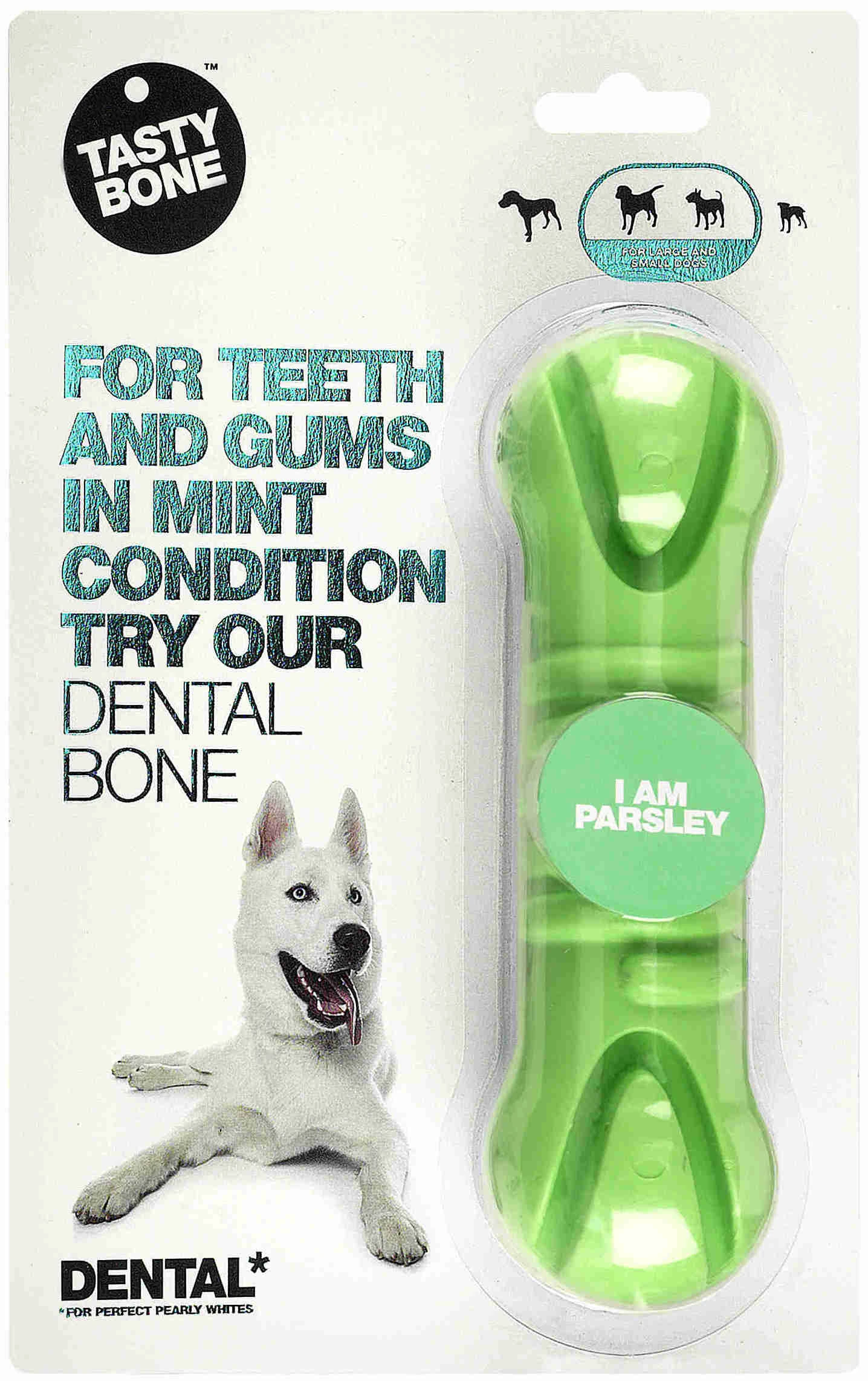 Nuestra gama de productos DENTAL BONE están diseñados para mejorar la salud dental de tu perro y prevenir el comienzo de enfermedades. Las crestas y surcos únicos del DENTAL BONE masajean las encías y reducen la placa y el sarro acumulado. Su uso continuado ayuda a desterrar el mal aliento. El sabor está garantizado y se puede lavar con agua y jabón. Si el perro lo ingiere, los fragmentos pequeños pasarán por su sistema digestivo sin causar daños. No lanzar al perro para que lo coja al vuelo, el impacto puede dañar sus dientes. Reemplazar cuando sea tan pequeño que el perro pueda atragantarse. Utilizar con supervisión.