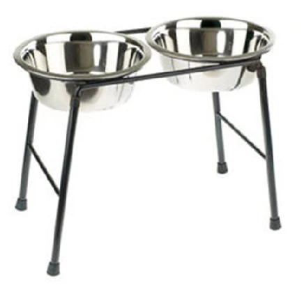 Comedero metálico doble con base. Elaborado en un material resistente y duradero, comodo y facil delimpiar.Tamaño 2x1600ml. Altura 300mm