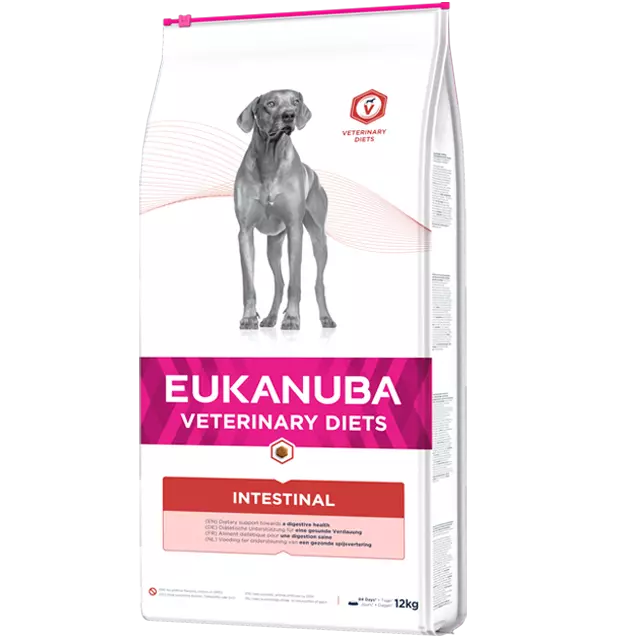 Eukanuba VD Dog Intestinal es un alimento seco para perros con problemas de vómitos, diarrea, gases o estreñimiento. Es la solución perfecta para combatir y controlar problemas gastrointestinales mediante una alimentación sana.