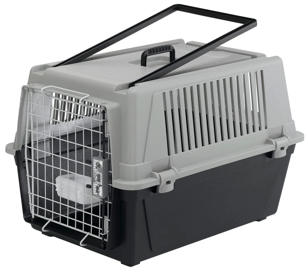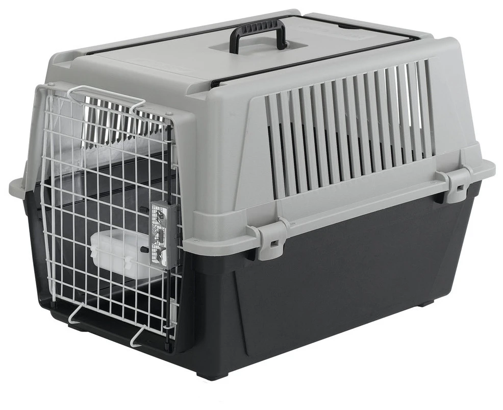 Transportín resistente para perros con accesorios: comedero, colchón, tornillos. El modelo Atlas 50 está diseñado para perros medianos y Atlas 60 para perros grandes. Ideal para viajar, ambos modelos cumplen con la normativa IATA.