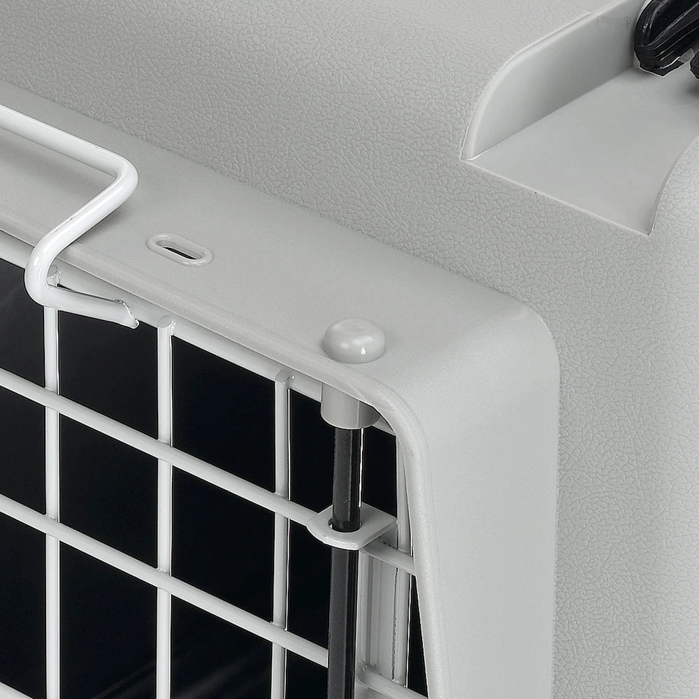 Permite la ventilación del interior gracias a la rejilla frontal. El interior del transportín es amplio y espacioso, lo cual permite a tu mascota levantarse durante el viaje e incluso comer o beber cómodamente.