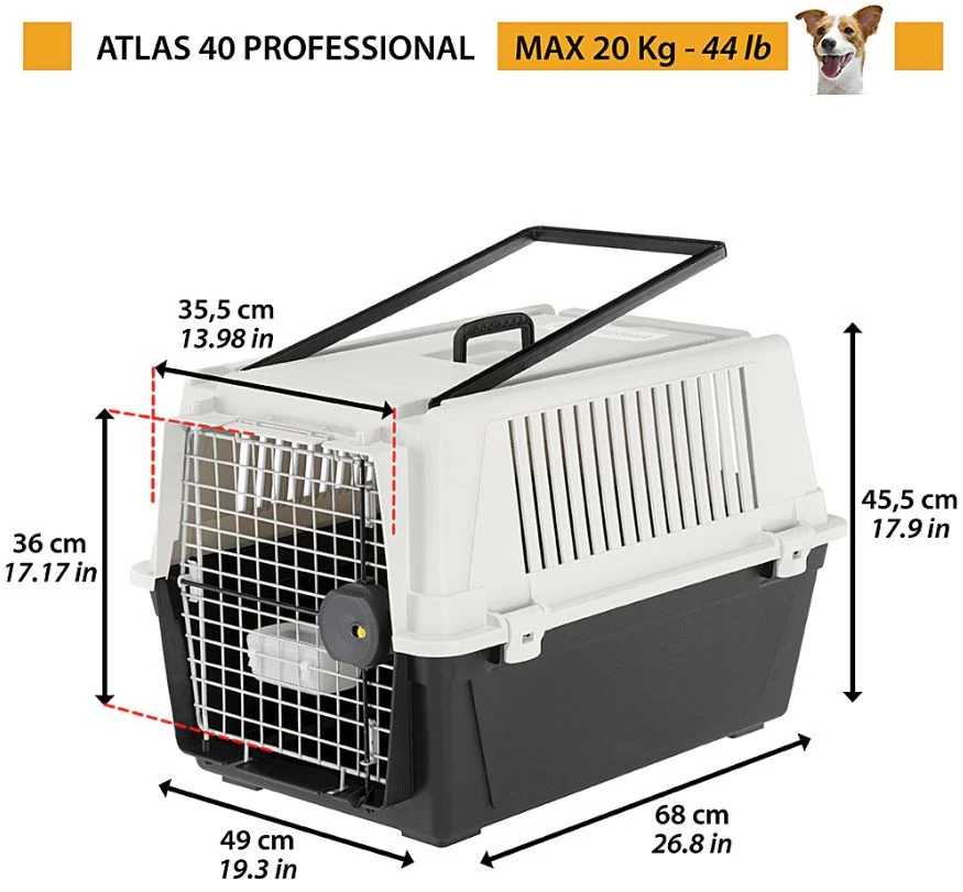 Atlas Professional es un transportín adecuado para viajar con perros en avión de forma segura. Igual que todos los transportines Ferplast, cumple con la regulación aérea de la IATA.