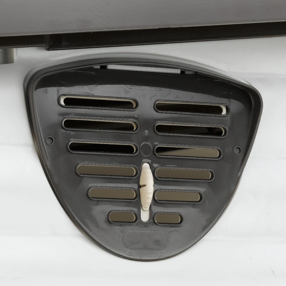 La base está diseñada con ranuras especiales que permiten que el agua corra fuera de la jaula.