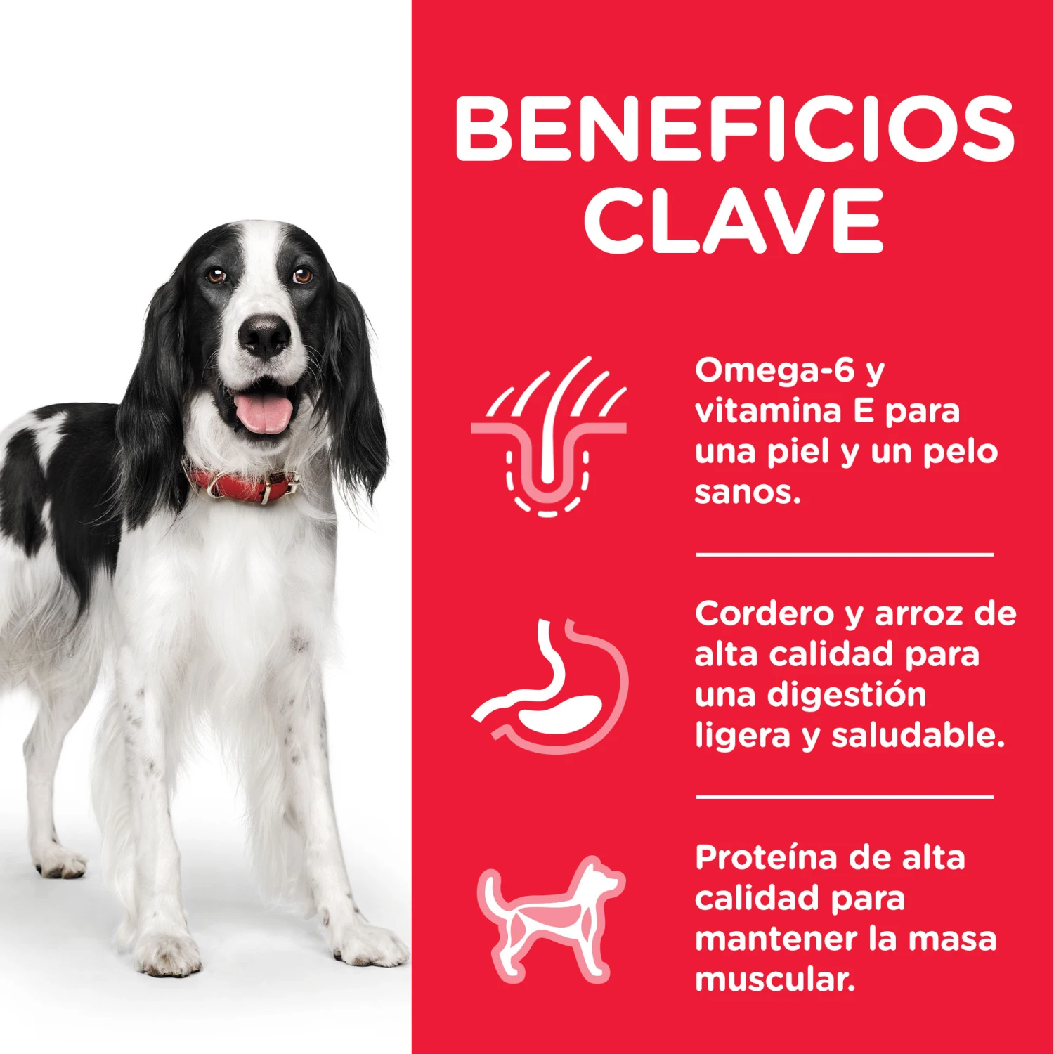 El pienso Hill’s Science Plan Canine Adult con Cordero y Arroz contiene la Fórmula Antioxidante Superior de Hill’s, que ayuda a mantener el sistema inmunitario sano. A parte de esto, ofrece otros muchos beneficios para tu mascota: