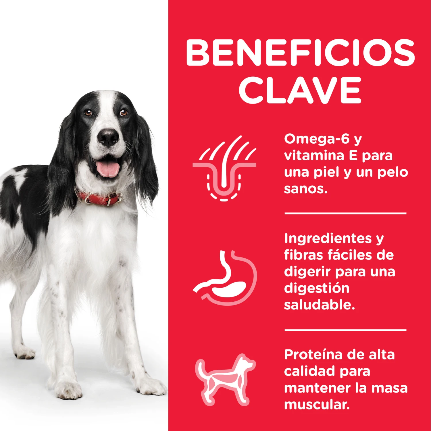 Para perros adultos de razas pequeñas y medianas con actividad moderada, desde 1 año hasta 7 años de edad. Una nutrición rigurosamente equilibrada para favorecer el músculo magro y mantener los órganos vitales sanos. Con antioxidantes clínicamente probados, proteínas de alta calidad y ácidos grasos omega-3.