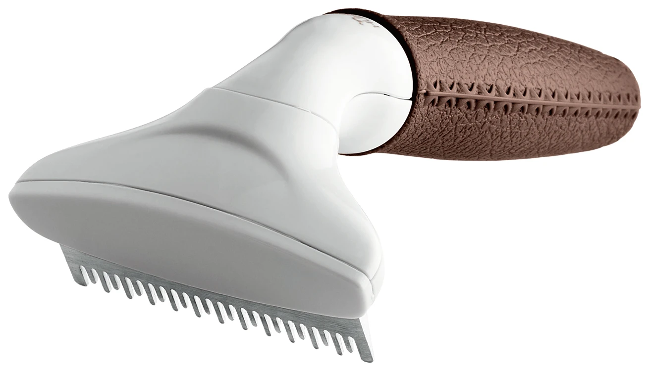 La innovadora cuchilla hecha de acero inoxidable de alta calidad elimina el pelo suelto y la caspa de la capa superior y la capa interna de su amado amigo. Esto es particularmente efectivo gracias a la estructura única y probada, especialmente para perros de pelo largo y mediano. El mango de forma ergonómica garantiza que la hoja sea antideslizante, cómoda y fácil de usar. El adelgazamiento del pelaje de forma eficaz no se limita exclusivamente a los perros, porque el peine de curry también es ideal para los caballos.