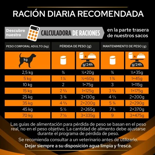 Consulta la tabla para la cantidad diaria de alimento recomendada. Estas cantidades son solo una guía. Para ayudar a mantener a tu perro o gato en una condición corporal ideal, ajusta las cantidades según el nivel de actividad de tu perro, condición física y necesidades individuales. Proplan aconseja Dejar siempre a su disposición agua limpia y fresca. Para mantener a tu perro o gato saludable, consulta a tu veterinario regularmente.