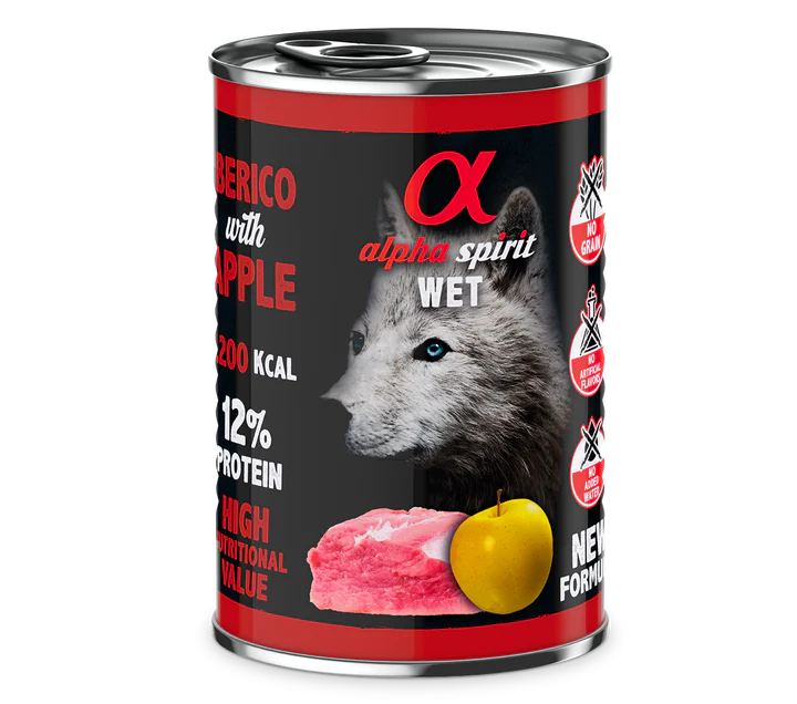 Descripción Pack 6 Comida Húmeda de Cerdo con Manzana Amarilla para Perros Alpha Spirit