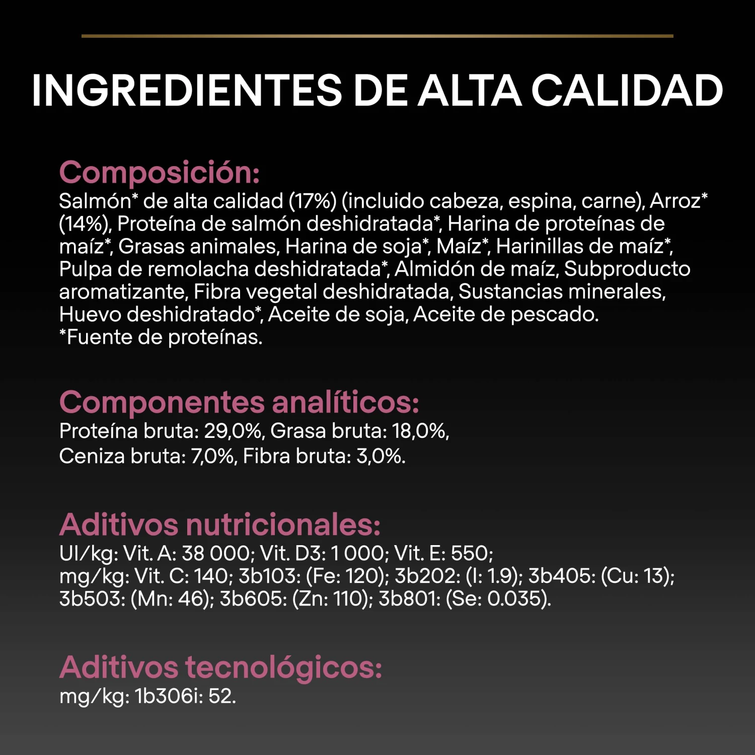 Contiene proteínas del salmón de alta calidad.