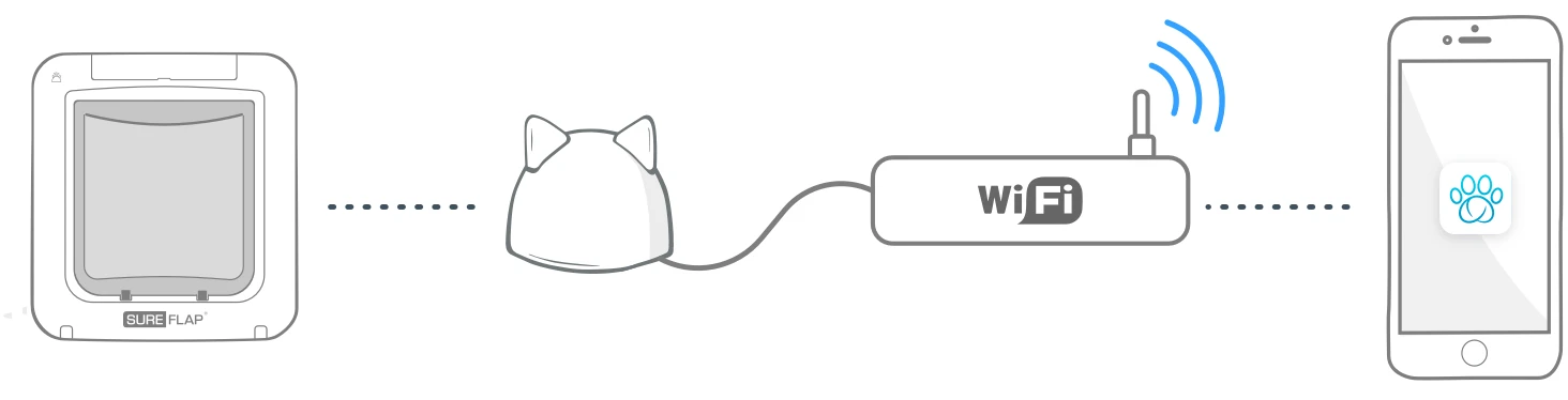 Conéctate a un nuevo nivel con el Hub, que vincula la puerta Connect con la aplicación Sure Petcare. Puedes comprarlo con la puerta o por separado