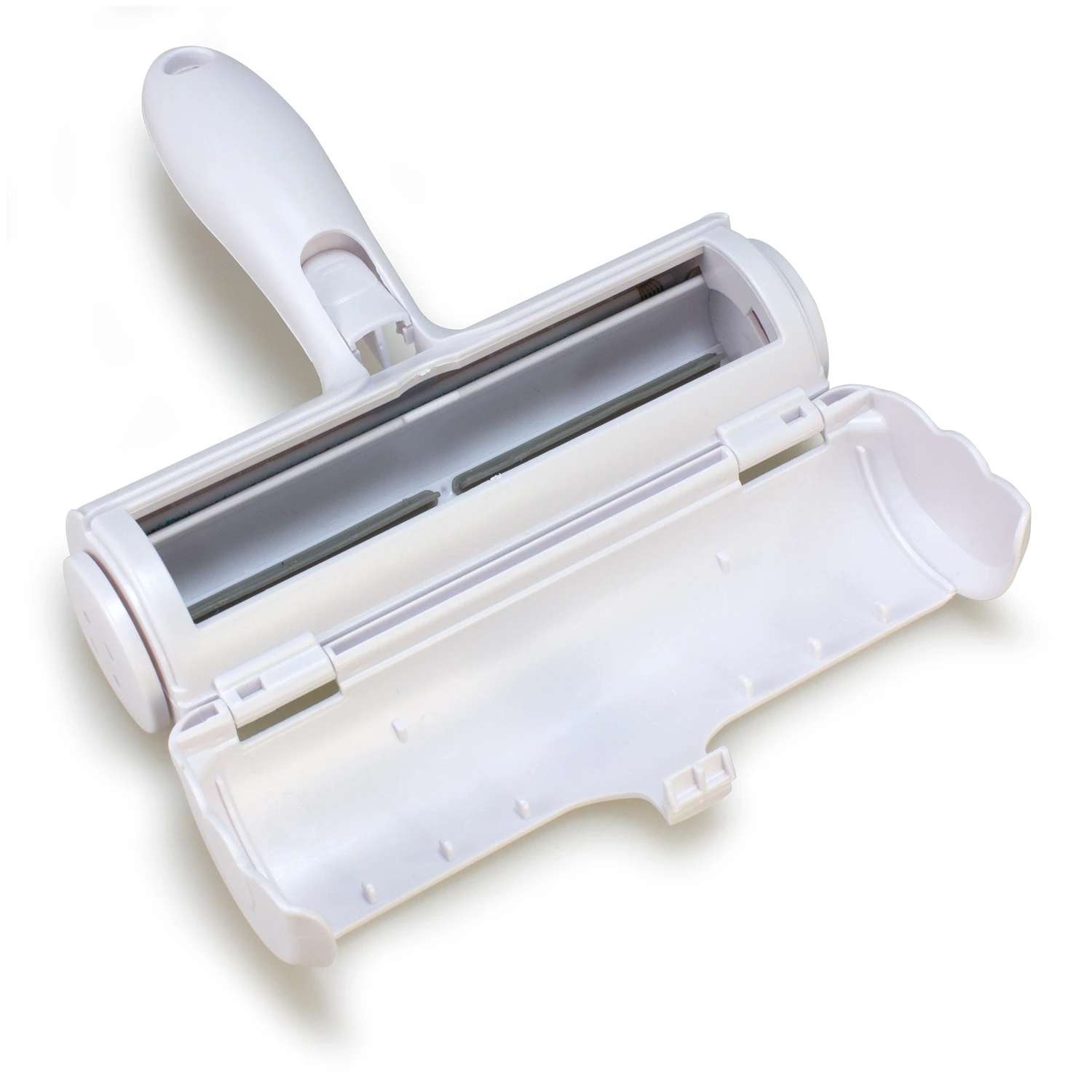 Muy efectivo si se usa haciendo movimientos cortos y rápidos de ida y vuelta con el rodillo, capturando todo el pelo y la pelusa de las mascotas en el receptáculo interno.