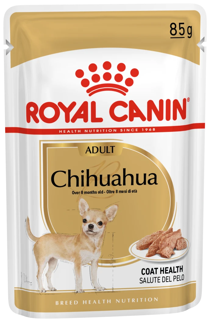 ¿Qué beneficios aporta Royal Canin Chihuahua? Pelo: contiene nutrientes para la salud del pelo y la piel Textura adaptada: altamente palatable (tipo paté) Tránsito intestinal: ayuda a mantener una buena salud del tránsito Estimulación del apetito: satisface apetitos exigentes