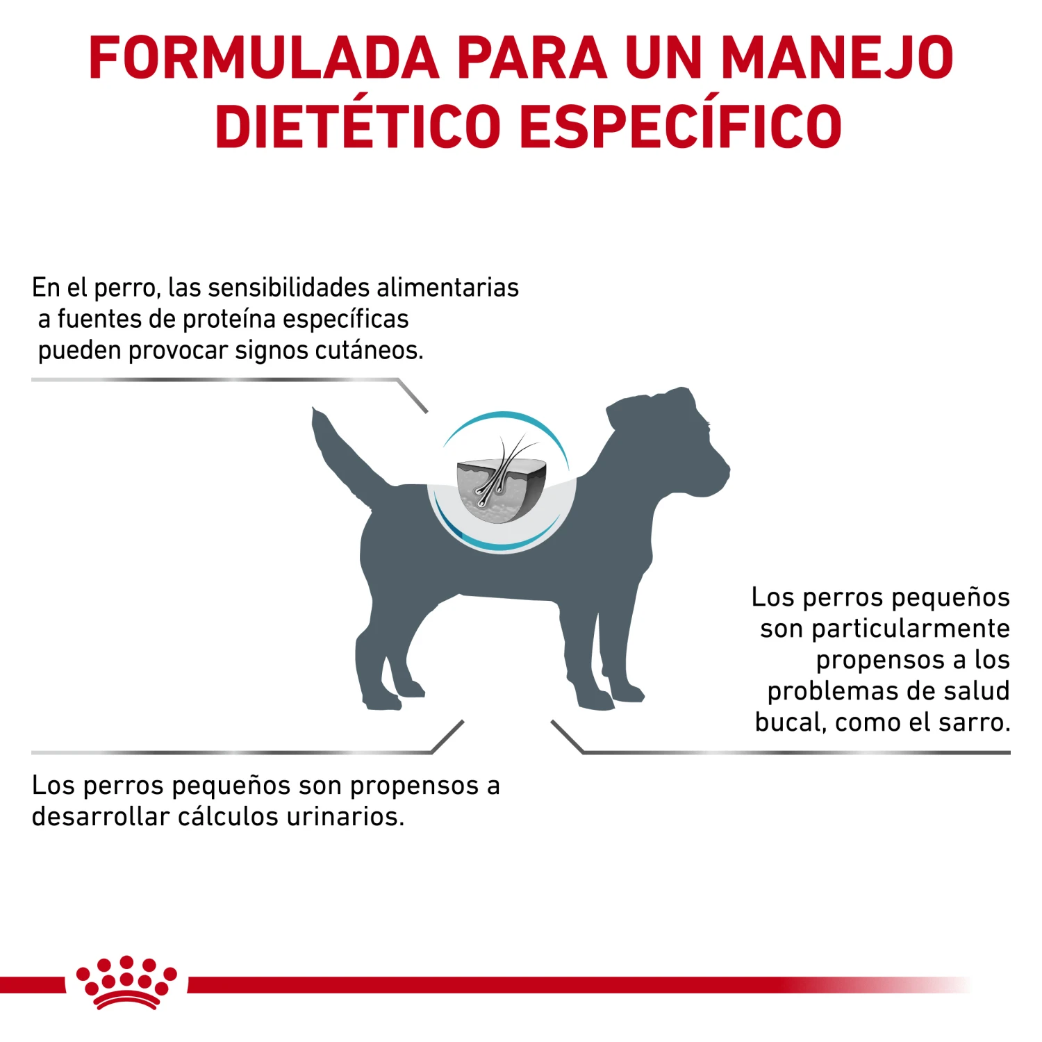 Especificaciones:Cuando se sospecha una alergia o intolerancia alimentaria, se deberá modificar la alimentación del perro sin periodo de transición alguno. El tratamiento con dieta hipoalergénica se deberá continuar durante toda la vida del perro y puede administrarse tanto en perros adultos como en cachorros.