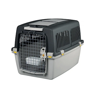 Transportín para perros y gatos Gulliver IATA Este sofisticado transportín ha sido especialmente diseñado para acoger perros de tamaño grande y mediano Compatible con ruedas giratorias para hacer más fácil su desplazamiento (no incluidas) Sus ventanas laterales garantizan la correcta ventilación de la jaula Incluye un amplio bebedero Su sofisticado sistema de seguridad la convierte en la jaula más segura del mercadoDisponible en color gris