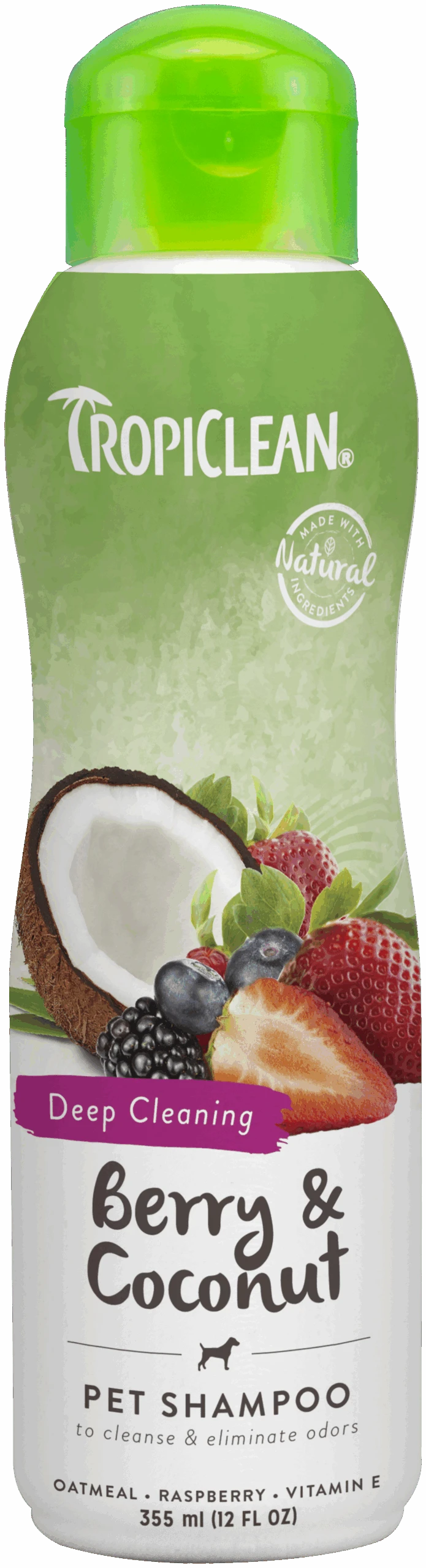 Champú con moras y coco para perros y gatos de todas las edades. Tropiclean limpia en profundidad el pelo de tu mascota, eliminando toda la suciedad. Contiene frambuesa, mango y otras frutas que ofrecen una limpieza extrema. También ayuda a restaurar la humedad y suavidad del pelo. Conserva el efecto del producto antiparasitario. Contenido: 592ml.
